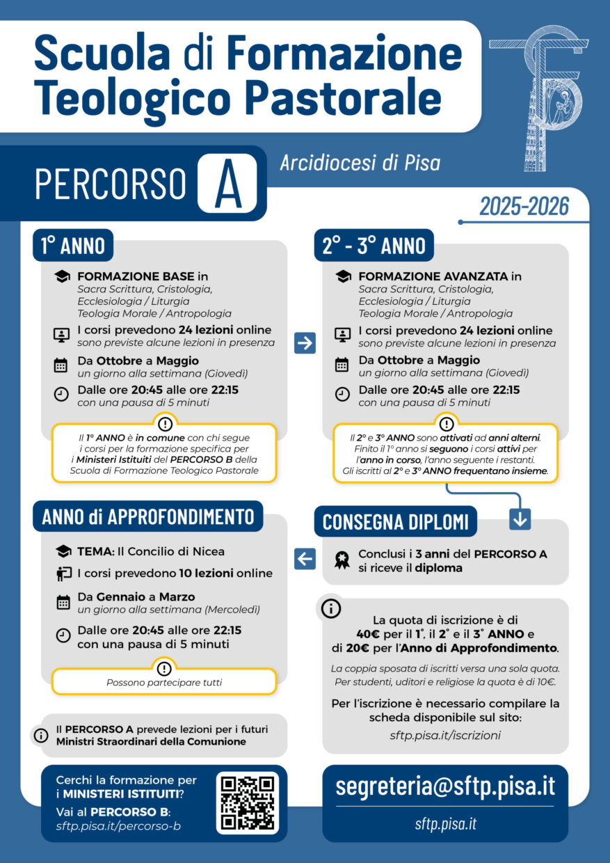 Il 1° ANNO è in comune con chi segue i corsi per la formazione specifica per i Ministeri Istituiti del Percorso B della Scuola di Formazione Teologico Pastorale